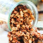 This paleo granola recipe is a standard at my house! It makes the best go-to snack or breakfast or dessert… there is no bad time to eat this pumpkin spice granola! But buying paleo granola at the store? It gets really expensive (not to mention hard to find!), hence the need for our very own paleo pumpkin granola!