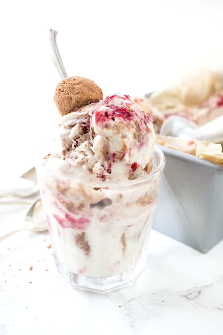 And I’ve made many varieties, but my favorite concoction so far has got to be this Raspberry Chocolate Truffle Ice Cream!