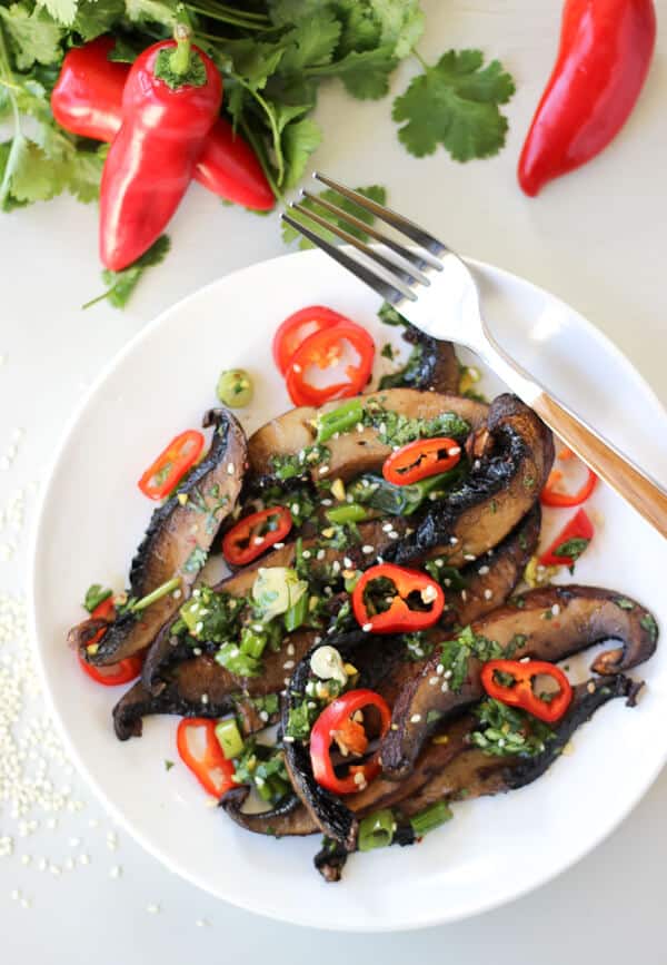 This Asian mushroom recipe is the perfect combination of cilantro, fresh ginger, tangy vinegar, Fresno chili and of course, earthy mushrooms. The ingredients are super simple, but the flavors are bold and bright!